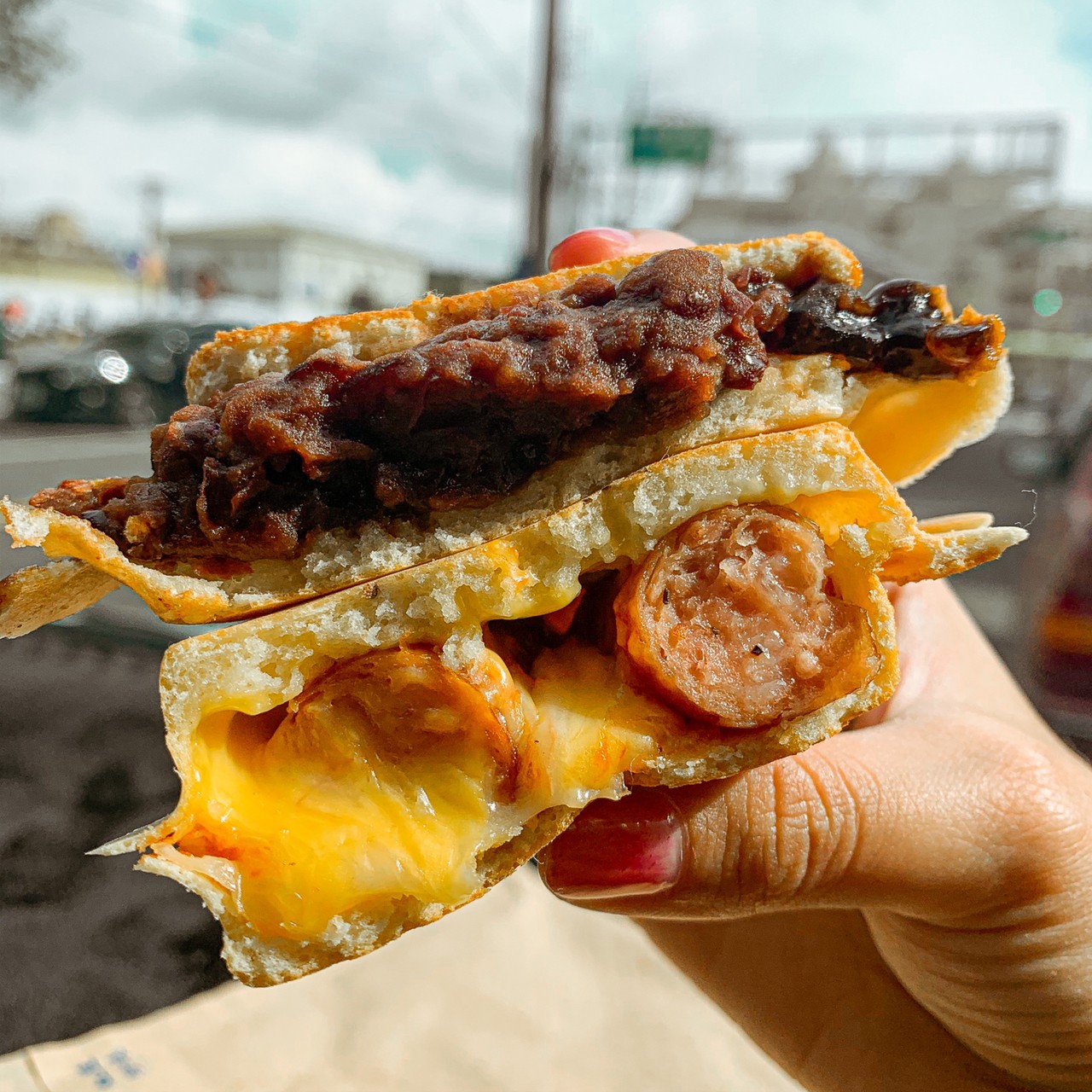 喜歡鹹食必點! 有稍微甜甜的餅皮香 搭配起司香腸重口味